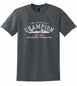 Wear our shirt and increase amyloidosis awareness in your community! 50% cotton, 50% polyester Color: Dark Gray